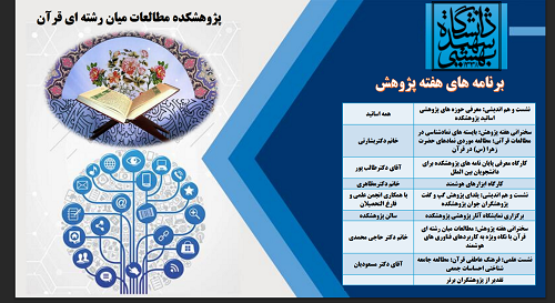برنامه های هفته پژوهش در پژوهشکده مطالعات میان رشته‌ای قرآن
