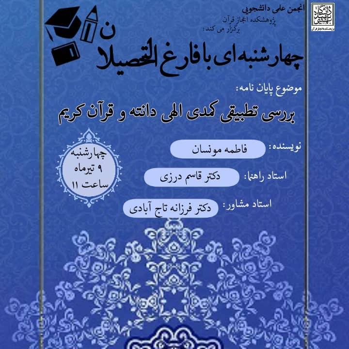 🔸 عنوان پایاننامه : بررسی تطبیقی کمدی الهی دانته و قرآنکریم